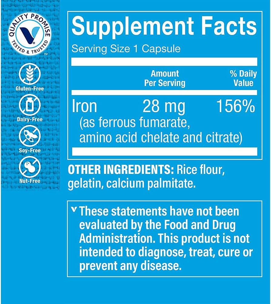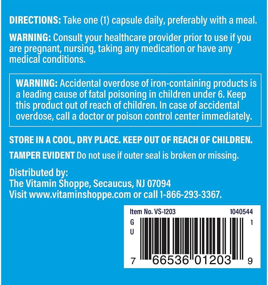 The Vitamin Shoppe Iron 28MG, Well Absorbed Forms of Iron, Supports Immune Health Energy Production, Essential Mineral, Once Daily (300 Capsules)