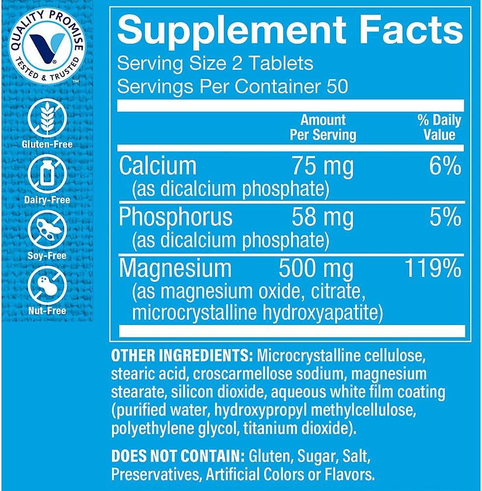 The Vitamin Shoppe Magnesium 500MG – Muscle Relaxation, Bone Health & Energy Production Support, Daily Mineral (100 Tablets)