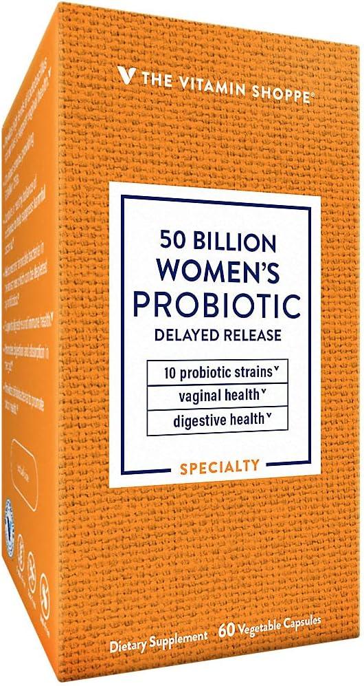 The Vitamin Shoppe Women’s Probiotic Delayed Release 50 Billion – with 10 Probiotic Strains to Support Digestive, Immune & Vaginal Health or Yeast Imbalance – Shelf Stable (60 Veggie Caps)(60 Count (Pack of 1))